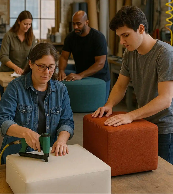 From fabric and colour selection to size, shape, and leg finishes, you have complete control over the design. Choose from round, square, or modular ottomans and create layouts that complement your existing fitout.