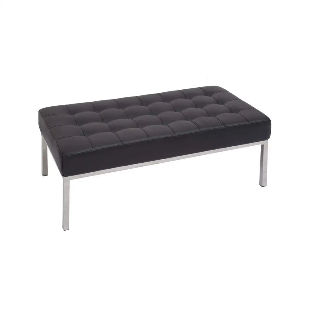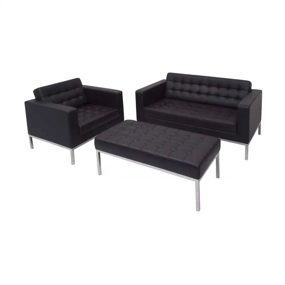 Add this ottoman to your Ikon reception suite. Use as footstool or table. Button finish to black PU, easy clean upholstery. Stainless steel underframe and legs.