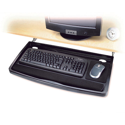-Extra-wide tray with room for oversized keyboards and integrated mousing area