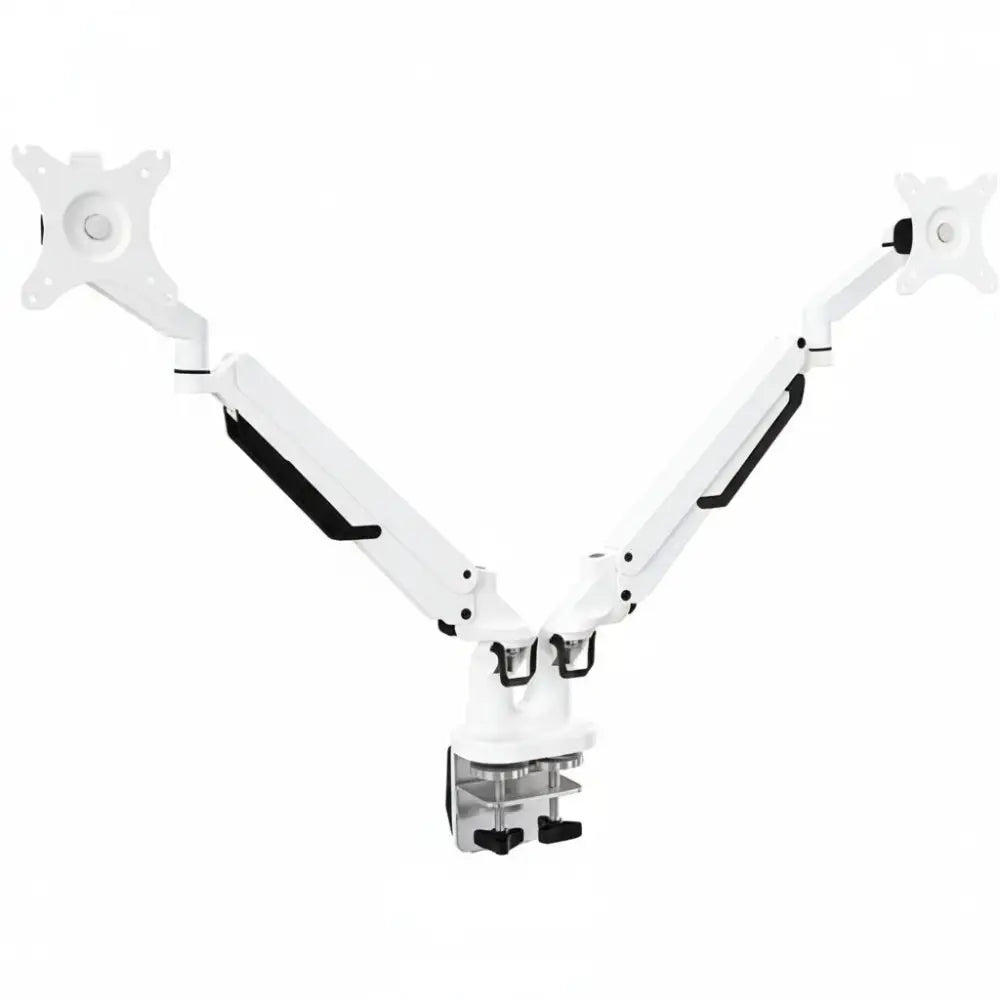 Space-saving double arm for near screens etc. Quick-release VESA plate gas spring 360-degree rotation. Supports up to 17-33" monitor and 2-9kgs. Both bolt through and clamp-on fixing options in the same kit.