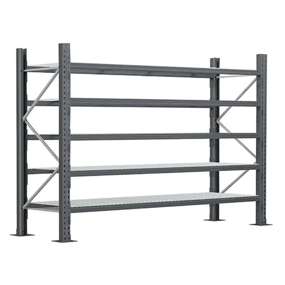 Comes with a combination of 2 x 900mm Long shelves per level (to reach 1200mm L)